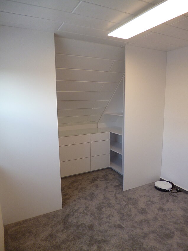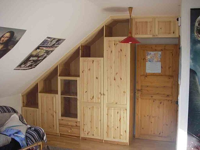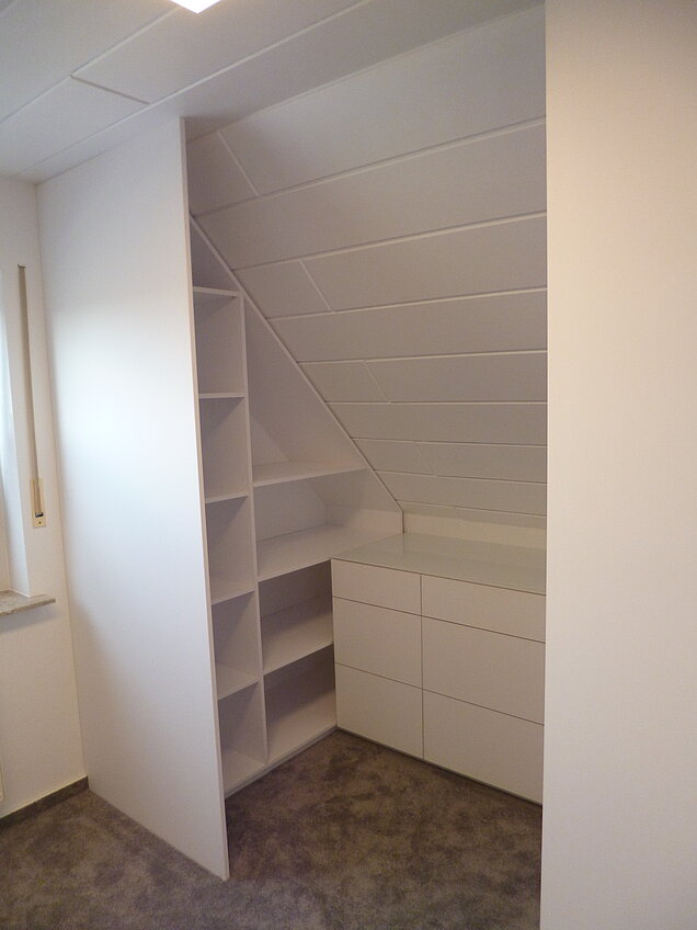 Passgenaue Einbauten in Wandnischen und Dachschrägen erfordern ein genaues Aufmaß und höchste Präzision bei der Ausführung.