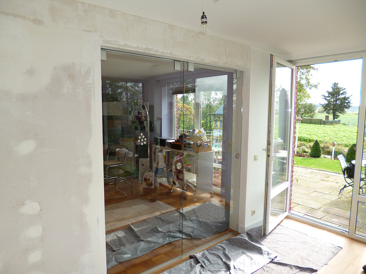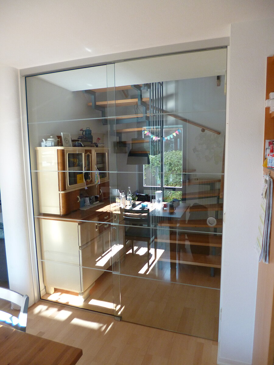 Wir fertigen für Sie individuell gestaltete Schiebetüren aus Glas, ohne Rahmen. Im Zusammenspiel von Glasoberfläche und Beschlag haben Sie die freie Auswahl. Auf diese Weise entstehen herrliche Einzelstücke, die den Blick auf sich ziehen.